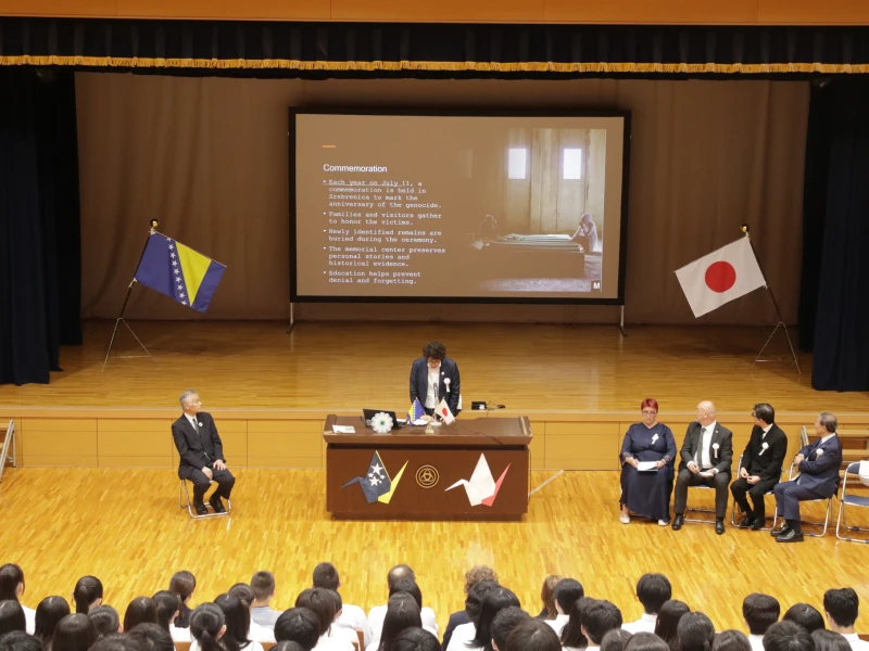 Tokyo, July 11, 2025 – A commemoration was held today in the capital of Japan on the occasion of the 30th anniversary of the genocide in Srebrenica, organized by educational institutions from Japan (Kaichi Nihonbashi Gakuen) and Bosnia and Herzegovina (Third Gymnasium Sarajevo), as part of the Miraiba youth exchange. The event brought together students, teachers, parents, representatives of local authorities and diplomatic missions, in order to honor the victims of genocide in a dignified manner and to affirm messages of peace and shared responsibility.